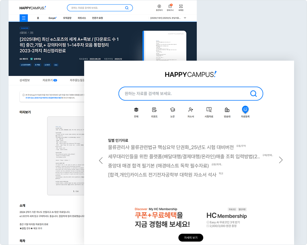 해피캠퍼스는 여러 제휴사의 양질의 자료를 제공합니다. 논문, 기업 보고서, 이북, 서식, PPT 템플릿 등 다양한 제휴 콘텐츠를 제공합니다.
