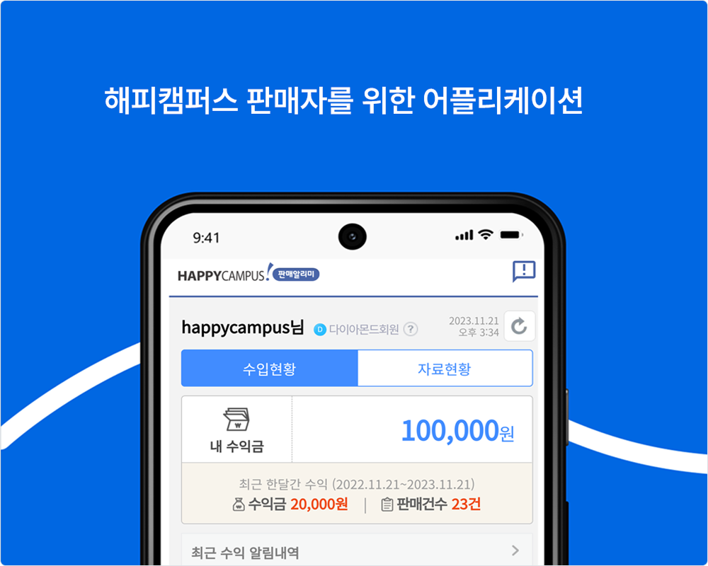 회원님도 해피캠퍼스 판매자가 되어 실시간으로 자료 수익금이 올라가는 행복한 경험을 느껴보세요.